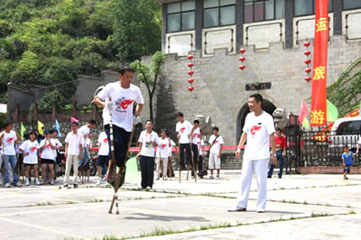 張家界高花燈亦稱高皇燈,是流行于永定沅古坪一帶富有民族特色的舞蹈。表演時(shí),12人至24人不等。配有鑼、鈸、嗩吶、鼓等樂器。每人手中拿一盞紙?jiān)鸁艋\,內(nèi)點(diǎn)蠟燭兩根,頂扎一木偶像,用五色紙剪成戲文故事如“八仙” 、“瓦崗寨”,“梁山英雄 ”之類。高花燈表演有一套程式,要求東起西落,進(jìn)一個(gè)“半邊月”,出一個(gè)“月團(tuán)圓”,舞個(gè)“太極圖”。亦可進(jìn)民房表演,叫“愿燈”,多為祝福、還愿或?yàn)槟臣蚁彩聹惾ぁ4蜻汉取⒋蚩谏趧t只能到戶外表演,叫“眾燈”,是讓大家看的。其形式又分民燈、戰(zhàn)燈。前者表演 古代先民的遷徙、繁衍、勞動(dòng)、生活;后者表演打仗破陣。隊(duì)形變化有“織籬笆”、滾柱頭”、“十八斗”、“螺螄轉(zhuǎn)頂”、“八卦陣”、“過天星”、“一字長蛇”等二十余種。如破“象棋盤陣”,主人插三十二根香,擺成棋盤陣,表演時(shí),主人舉紅傘,玩燈者舉黑傘,從河道進(jìn),將眾“子”一一吃掉(即踩香),這是斗智的競賽。只見燈火如流星般穿插舞蹈 ,旁邊配以龍燈互舞(配龍玩燈,是高花燈的主要特點(diǎn)之一),那激起的鑼鼓聲、吆喝聲、口哨聲,掀起有節(jié)奏的聲浪,熱烈而歡快。 張家界高花燈發(fā)祥于張家界市永定區(qū)沅古坪鎮(zhèn)等地區(qū),與沅古坪地區(qū)接壤的沅陵、桃源、慈利等周邊區(qū)縣也有少量玩高花燈的習(xí)慣。 高花燈的燈代表著光明幸福,12個(gè)燈表示12個(gè)月,月月平安無事。每年春節(jié),每個(gè)村寨都要操練一班高花燈,辭舊迎新。制作時(shí),藝人用竹篾和紙?jiān)?2或24個(gè)燈籠,在燈籠下加上一個(gè)長柄燈托,并在燈籠上扎上五顏六色的“故事”,如“八仙”、“耿氏送子”等。夜晚,在燈籠里點(diǎn)上木油臘燭,一人舉一個(gè)燈籠,邊舞邊組成多種隊(duì)形。一眼望去,流光閃爍,尤如銀河戲舞。 張家界高花燈不但為本鄉(xiāng)本土的觀眾所喜愛,而且受到海內(nèi)外朋友及國際友人的高度贊賞。因?yàn)樗侵袊爬系拿耖g舞蹈代表,它以自成體系的記譜方法,延繼著中國舞蹈的血脈,以其悠久的舞蹈歷史和多元文化特征,被舞蹈界認(rèn)為是“中國舞蹈歷史上的活化石”,極具學(xué)術(shù)研究價(jià)值和很高的審美價(jià)值。已列入全省第一批非物質(zhì)文化遺產(chǎn)保護(hù)名錄。 高花燈相傳起源于東漢章帝初年,時(shí)“ 中蠻”覃兒健在澧水中下游舉義反漢,與漢軍“戰(zhàn)于洪下”(相傳為今大庸紅土坪,待考),洪下“蠻人”用火 把跳舞為義軍吶喊助戰(zhàn),終因漢軍勢眾,覃兒健與義軍全部戰(zhàn)死(至今留下懸鼓坪、御甲埡、扎營山、烽火臺(tái)等古戰(zhàn)場遺跡)。以后,當(dāng)?shù)匦U人每年都必在過 后年(從正月初一至元宵節(jié))打火把集會(huì)跳舞, 栽“ 陽樁”(土話栽跟頭),表示對“洪下之戰(zhàn)”的紀(jì)念 。久而久之,火把進(jìn)化成燈籠和扎人物事故,表演也 有一定規(guī)矩。至今,這種舞蹈藝術(shù)還保留著古老、原始、粗獷、豪放、悲壯的特色。 |