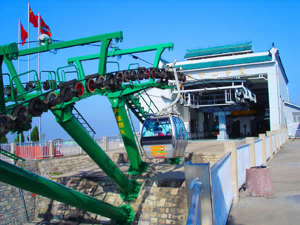 湖南武陵源索道有限公司成立于1995年12月7日,武陵源區(qū)人民政府和香港安達(dá)國際度假樂園(張家界)有限公司簽約,是由香港安達(dá)國際有限公司投資的外商獨(dú)資企業(yè)。1996年6月動(dòng)工興建天子山索道,1997年5月正式對外營運(yùn)。天子山索道是單線循環(huán)式脫掛抱索器客運(yùn)索道,全部設(shè)備自奧地利Doppelmayr公司進(jìn)口。設(shè)計(jì)水平線1960m,斜線長2084m,兩端站高差692m。配單線自動(dòng)循環(huán)車廂41個(gè),每車廂載6人,運(yùn)速5m/s,每小時(shí)單向運(yùn)量900人。索道動(dòng)力電,采用雙電源;配備有應(yīng)急備用柴油機(jī),用于停電或發(fā)生設(shè)備事故時(shí)緊急疏散游客。