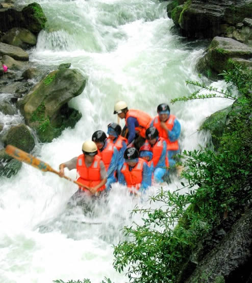 西門峽漂流全程6公里,屬萬溶江流域,它發(fā)源于兩頭羊自然保護(hù)區(qū)的群山之中;沿途危崖夾峙,樹木蔥榮,水質(zhì)清澈、急流、險(xiǎn)灘星落棋布。共有虎跳澗、白龍灘、臥龍灘、青龍峽、鬼見愁、龍王灘等急流險(xiǎn)灘30余個(gè)。其中以青龍灘最為著名,它全長400米,落差20余米。它和龍王灘一道堪稱國內(nèi)漂流之經(jīng)典。