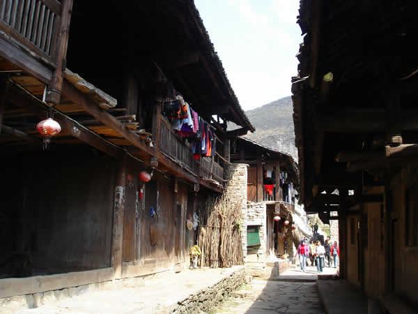流水悠悠,人事蒼桑。到了近代,由于陸上交通的迅速崛起,水上交通漸漸衰落,小鎮(zhèn)慢慢地被人遺忘在峽谷之中了。失去了往日繁華的小鎮(zhèn),并沒(méi)有失去多少古色古香的本來(lái)面目,使我們今天能通過(guò)這殘缺的街道、建筑、店鋪,去感受她逝去的風(fēng)采。古老的風(fēng)火墻、底矮的吊腳樓,向游人展示著土家人的聰明才智,一條條青石板、一聲聲咚咚喹,在訴說(shuō)著古寨子過(guò)去的輝煌。