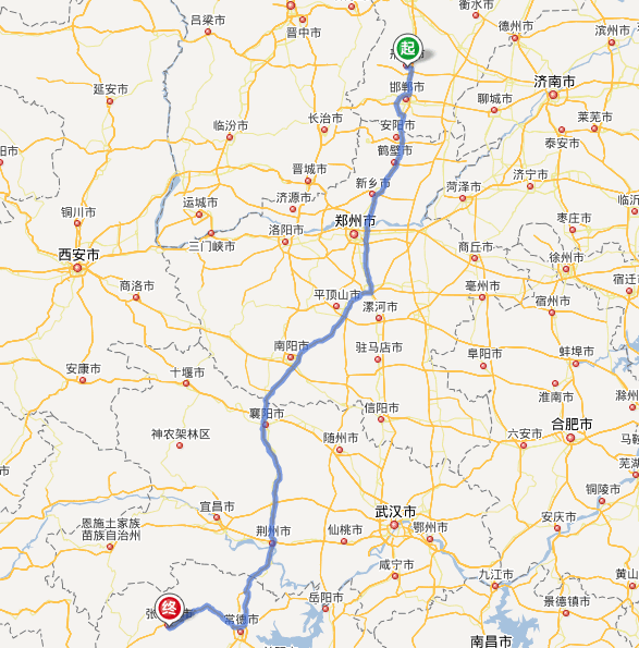 邢臺(tái)到張家界自駕車路線地圖(距離最短)
