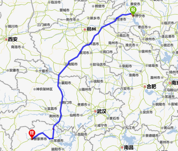 濟(jì)寧去張家界自駕車自助游線路圖全程高速):