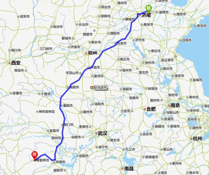 章丘去張家界自駕車(chē)自助游線路圖全程高速):