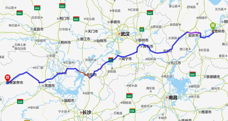 九華山去張家界自駕車自助游線路圖全程高速):