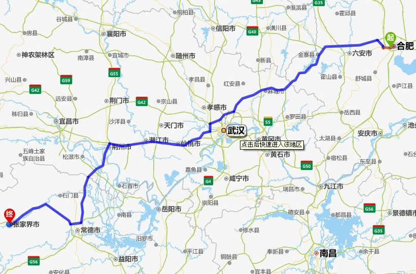 蕪湖去張家界自駕車自助游線路圖全程高速):