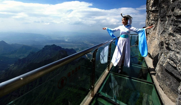 【張家界大峽谷玻璃橋】號(hào)稱世界最長(zhǎng)、最高的全透明玻璃橋,玻璃橋總長(zhǎng)430米、寬6米,橋面距谷底約300米,可站800人。橋面全部采用透明玻璃鋪設(shè),橋中心有全球最高的蹦極臺(tái),整個(gè)工程無(wú)鋼筋支架,是一種全玻璃結(jié)構(gòu)的橋梁。玻璃橋建成后,將成為世界首座斜拉式高山峽谷玻璃橋;并創(chuàng)下世界最高最長(zhǎng)玻璃橋、首次使用新型復(fù)合材料建造橋梁等多項(xiàng)世界之最!