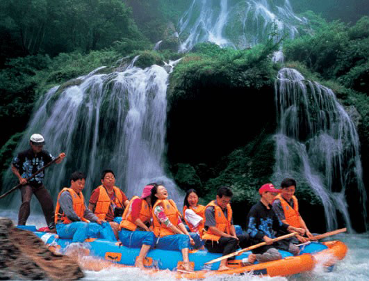 上 午:乘漂流公司專線車赴【猛洞河漂流】,(門票已含)赴漂流上站碼頭,體驗(yàn)“天下第一漂”,起點(diǎn)哈妮宮距王村約40公里,行車1小時,終點(diǎn)牛路河距王村30分鐘的車程,漂流水路長17公里,漂流兩個半小時。從哈妮宮放舟而下,一路是古老的河道,哈妮宮、山腳巖、捏土瀑布、回首峽、落水坑瀑布、夢思峽、牛路河大橋等景點(diǎn)。絕壁百里,怪石嶙峋,灘奇水異,兩岸蒼翠的林木,云霧繚繞,飛瀑流泉與溶巖峰林交相輝映。拐一百五十五個彎,在一百三十三個灘潭中穿梭而行,迂回流連,馳魂奔魄,心曠神怡。猛洞河漂流被著名的社會學(xué)家費(fèi)孝通先生譽(yù)為“天下第一漂”;